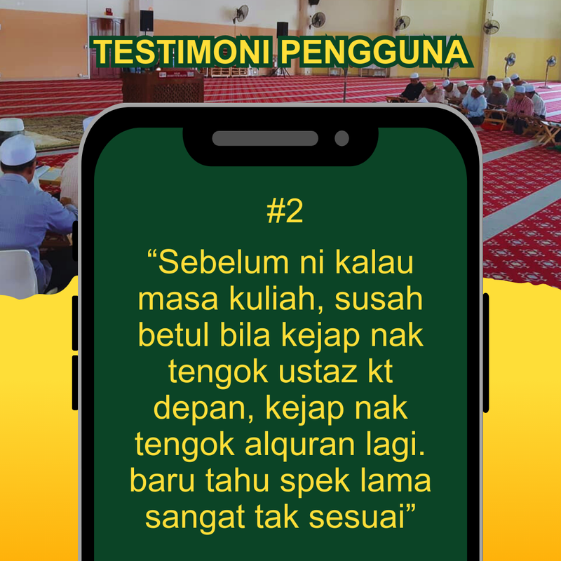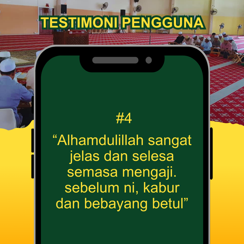 2- Juga mempunyai power khas pada jarak setengah depa dari muka kita. Jadi kita juga boleh nampak dengan jelas apabila bahan bacaan seperti kitab al-quran diletakkan di atas rehal.